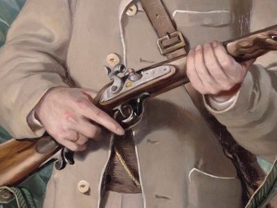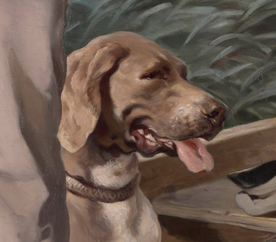 Aufrecht, den Blick in die Ferne gerichtet, steht Friedrich von Boxberg vor uns. Stolz präsentiert er sein Gewehr. Hinter ihm sein treuer Hund, die Jagdbeute und – jenseits des Wassers – sein Besitz: Schloss Zschorna. Das Bild eines erfolgreichen Mannes. Oder etwa nicht? Denn Boxberg steht auf einem schwankenden Kahn, er hat Augenringe, wirkt etwas aufgedunsen. Der Maler, Ferdinand von Rayski, hat nichts beschönigt. Und so lässt das Ganzfigurenporträt, das auf den ersten Blick so repräsentativ scheint, durchaus auch andere Interpretationen zu.