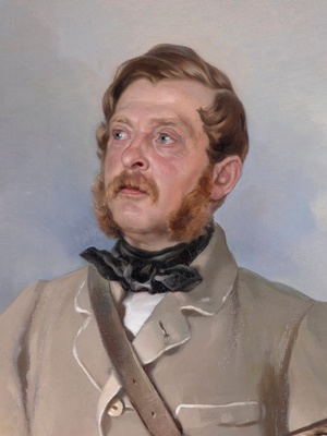 Friedrich von Boxberg stand beim Dresdner Aufstand 1849 auf Seiten des Königs und ließ auf Menschen schießen, die für die Freiheit kämpften, und die er zum Teil auch persönlich kannte. Danach zog er sich auf Schloss Zschorna zurück, wo ihn der Künstler besuchte. So gesehen zeigen sich in dem Bildnis auch die gesellschaftlichen Konflikte.