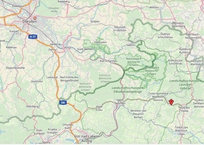Statement der Künstlerin: Panská Skála ist was ganz Besonderes. Auf meiner Suche nach sichtbarem Flysch Basalt bin ich auf diesen Ort an der Grenze gestoßen. Da finden wir einen wunderbaren Knick in der Formation, diese Wende der sechseckigen Formationsoberflächen verursacht, dass ich mich betrachtet fühle. Diese Wechselwirkung vom Blick der Natur zu mir und meinem betrachtenden Blick auf die Natur war ausschlaggebend für meine Reise nach Panská Skála.