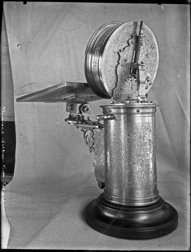 Auf dem kleinen Kartiertisch unterhalb des Ziffernblattes konnte man gleich während der Fahrt eine Routenrolle anfertigen - das war eine lange Papierrolle, auf der, in kleinerem Maßstab, die einzelnen Streckenabschnitte eingetragen wurden, einschließlich der Richtungsänderungen, die man unterwegs mit dem Kompass bestimmte. Eine solche Routenrolle legte der Kurfürst zum Beispiel auf seiner Fahrt zum Kurfürstentag nach Regensburg an.