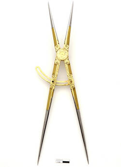 Was, glauben Sie, geschieht, wenn man diese Zirkel hier weiter öffnet? Schließen sich die kurzen Schenkel am oberen Teil? Oder öffnen sie sich ebenfalls? Und zu was sind diese überhaupt gut?