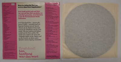 Das Plattencover zeigt den Schriftsteller Ernst Jandl mit aufgerissenen Augen, während er Gedichte vorträgt. Der Titel der Langspielplatte him hanflang war das wort entspricht den ersten Worten der Aufnahme, die 1980 beim Berliner Wagenbach Verlag erschien. Es sind Zeilen aus der Bibel, die durch häufige Wiederholung schrittweise verfremdet werden. Am Ende des Gedichts lösen sich die Worte schließlich vollständig auf und man hört nur noch ein Rauschen.