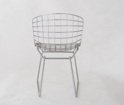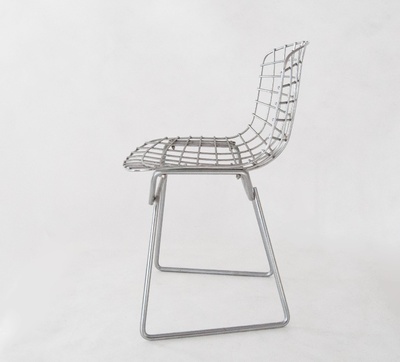 In den Jahren 1950 bis 1953 arbeitete der aus Italien stammende Bildhauer Harry Bertoia (1915-1978) an einer Reihe von Sesseln und Stühlen aus Stahldraht für den Möbelhersteller Knoll. Neben dem berühmten „Diamond Chair" entstammt dieser Serie auch der hier gezeigte Kinderstuhl.