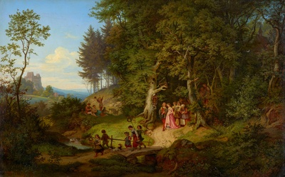 Richter's 'Brautzug im Frühling' depicts the idyll of a German forest. Zahra also associates this painting with the ideal of home. She speaks in Persian about yearnings, memories, and losses: