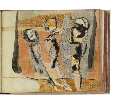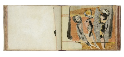Mitte der 1950er-Jahre nimmt Gerhard Ströch den Namen "Altenbourg" an. Das spricht von der engen Verbindung zu der Stadt Altenburg, in der er lebt und aufgewachsen war. Künstlerbücher spielen für den Maler, Zeichner und Dichter zeitlebens eine eigenständige Rolle, sie dienen also nicht für Vorarbeiten im Sinne von Skizzenbüchern. Jedes der Bücher, die Altenbourg häufig eigens binden lässt, variiert in Format, Papierart und -farbe. So geben sie den ersten gestalterischen Impuls. Für "Der Strom dein Zügel" nutzt Altenbourg stark strukturiertes, sandfarbenes Büttenpapier, das er mit warmen, gebrochenen Farbtönen bemalt. Der Untertitel – "Die menschliche Komödie" – zitiert Honoré de Balzacs vielbändige Sittengeschichte Frankreichs aus der ersten Hälfte des 19. Jahrhunderts. Altenbourgs Blätter sind von schemenhaften, fließenden Gestalten bevölkert. Häufig agieren zwei oder drei von ihnen in unklar bleibenden Situationen.