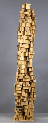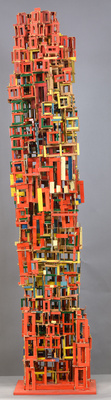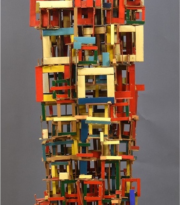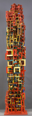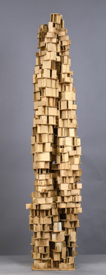 Eine Figur aus farbigen, verleimten Kartonstücken wächst vor uns in die Höhe. Die Turmskulpturen von Günther Hornig gehören seiner Werkgruppe der "Türme" an. Der damals an der Kunsthochschule in Dresden lehrende Künstler beginnt sie in den 1970er-Jahren. Die Figur "Nr. 3" setzt sich aus vielzähligen kleinen Fensterformen zusammen, die in ihrer komplexen Verschachtelung den Einblick verwehren. Die fragile Gestalt des Turmes scheint von dessen Auflösung zu künden. Denn ihre labyrinthische Form – so groß wie ein Mensch – wirkt instabil, als würde sie ihr eigenes Scheitern anzeigen. Zugleich ergibt sich der Eindruck, dass sie in einem monotonen Freiheitsdrang immer weiter in die Höhe wächst.