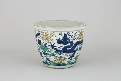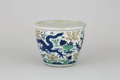 - Porzellan, Bemalung: Unterglasurkobaltblau und Aufglasurfarben (doucai 斗彩)