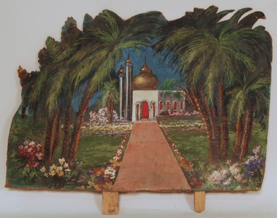 - Pappe, ausgeschnitten, bemalt; Holz, gesägt, gedrechselt, Draht