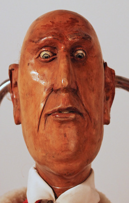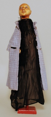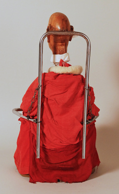 - Lindenholz, geschnitzt, bemalt; Schaumstoff, geklebt; Textilien (Baumwollgewebe, Plüsch, Kunstfasergewebe), genäht; Metall