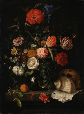 In seinem Antwerpener Atelier führte der Holländer De Heem seit der Mitte des 17. Jh. die Stilllebenkunst zu einem Höhepunkt. Er malte ausgewogen komponierte, geschickt kolorierte, prächtige Blumenbuketts, in denen er Pflanzen und kleine Tiere detailliert bis zur Augentäuschung schilderte.
