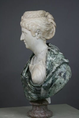 Ihre kunstvoll ausgearbeitete Frisur war stilbildend und wurde von vornehmen Römerinnen nachgeahmt. Ihrem Rang gemäß erhielt das Bildnis im barocken Rom eine besonders kostbar gearbeitete Büste.