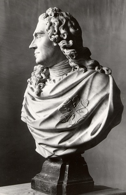 - Weißer Marmor, Sockel aus grauem Marmor mit roten Einschlüssen