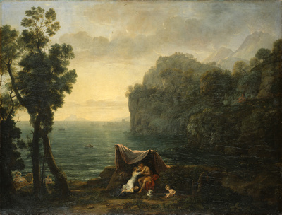 Wer die Geschichte von Acis und Galatea nicht kennt, muss die Szene auf Claudes Gemälde für eine traumhafte Idylle halten: Die Meeresgöttin Galatea trifft sich mit ihrem Liebhaber, dem jungen Hirten Acis, zu einem Stelldichein am Meer. Die beiden sind durch einen improvisierten Unterschlupft vor fremden Blicken geschützt. Galateas Begleiterinnen warten links in gebührendem Abstand in einem Muschelwagen.