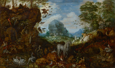 Im Auftrag Gottes baute Noah eine Arche, um von jeder Tierart ein Paar vor der Sintflut zu retten. Die biblische Geschichte erlaubte die Darstellung von über 100 unterschiedlichen Arten, die alle zoologisch bestimmbar sind. Neben den einheimischen interessierten Savery vor allem die exotischen Tiere, die er aus Berichten niederländischer Kaufleute und aus Tierbüchern kannte. Als Hofmaler Kaiser Rudolfs II. hatte er Zugang zu den Tiergärten in Prag, wo er z. B. Papageien und Raubtiere nach dem Leben zeichnete.