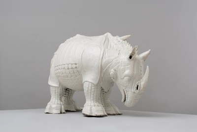Die beiden Nashörner wurden nicht nach lebenden Vorbildern gestaltet, sondern nach Buchillustrationen, die sich wiederum am berühmten Rhinozeros-Holzschnitt von Albrecht Dürer orientierten. Auch Dürer hatte nie ein Nashorn mit eigenen Augen gesehen, er kannte nur die Skizze eines Künstlers, der das Tier am portugiesischen Hof erlebt hatte.