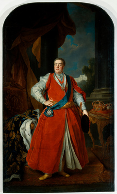 Natürlich auch ein Kunstwerk, war diese Statuette vor allem ein politisches Statement: Der Sachse auf dem polnischen Königsthron lässt sich in der traditionellen Tracht des polnischen Adels, dem weiten Mantel mit Schärpe und Ledergürtel, darstellen. Statt der damals üblichen Perücke trägt er einen tonsurartigen Haarschnitt. Die Figur ist nach dem offiziellen Herrscherportrait von Louis de Silvestre gefertigt. Es wurde in einer beträchtlichen Anzahl an Repliken und Kopien in Polen verbreitet, um an das Nationalgefühl zu appellieren.