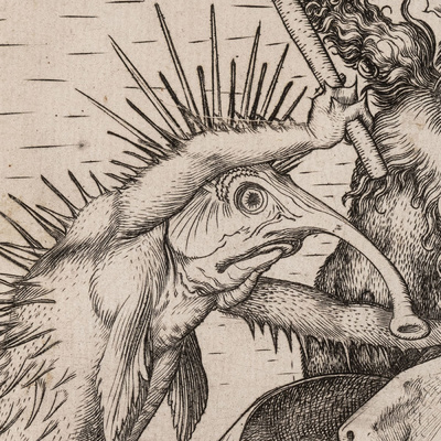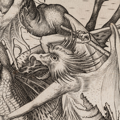 Schongauers hier gezeigtes Blatt zeichnet sich durch souverän eingesetzte grafische Strukturen, malerische Werte, Ausgeglichenheit der Formauffassung und Linienschönheit aus. Damit avanciert der Kupferstich zu einem autonomen Kunstwerk, das Werken der Malerei und Plastik ebenbürtig ist.