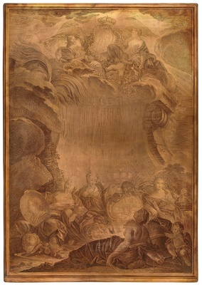Bei der Ausstattung dieser Alben wurden zur Regierungszeit von Kurfürst Friedrich August II. von Sachsen (als August III. zugleich König von Polen, reg. 1733–1763) weder Kosten noch Mühen gescheut. Das Titelblatt, das den meisten Alben vorangestellt ist, bestellte man bei einem der führenden Kupferstecher in Paris - Pierre Etienne Moitte (1722–1780). Die Kartusche wird von dem Monogramm AR (Augustus Rex) bekrönt, unten befinden sich die königlichen Wappen, ein Bildnis des Regenten sowie Minerva als Beschützerin der Künste.