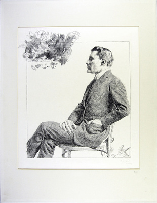 Im Juli 1943 wandte sich der Kunsthistoriker Johannes Guthmann mit einem Angebot an den Sonderbeauftragten Hermann Voss: „Ich beabsichtige mich von meiner Sammlung neuerer deutscher Graphik zu trennen. [...] Mittelpunkt ist das komplette Werk Otto Greiners […]“. Das hier gezeigte intime Porträt lässt auf eine enge Freundschaft des Sammlers mit dem Künstler schließen. Guthmann sammelte nicht nur Werke des in Leipzig geborenen Lithografen und Malers Greiner oder seines Zeitgenossen Max Slevogt, er trug als Schriftsteller mit Veröffentlichungen auch zu deren Bekanntheit bei.