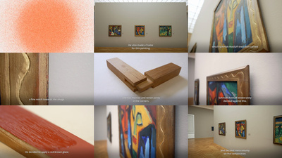 Der Titel des Bildes „Frauenkopf mit Maske“, das Karl Schmidt-Rottluff 1912 in Berlin malte, verspricht eine Eindeutigkeit, die das Bild nicht besitzt. Zu dessen rätselhaftem Charakter sagt die Kuratorin Birgit Dalbajewa: „Interessant ist, dass man gar nicht entscheiden kann letzten Endes: Ist es wirklich eine Maske, die die Frau in der Hand hält, oder ist es ein Gegenüber von einem Mann und einer Frau, weil sie, das Gesicht der Frau, ist genauso vereinfacht dargestellt. Es ist ebenfalls auf wenige Grundformen runtergebrochen, auf eine Nase, die wie geschnitzt erscheint, auf sehr einfache Augenhöhlen mit den geschlossenen Augen, und insofern schafft er in so ganz stark reduzierten, kubistisch-prismatisch gebrochenen Farbfeldern ein vis-à-vis von Mann und Frau, einen ganz reduzierten Dialog. Sie schließt die Augen, die Maske hat keinen direkten Blick, und diese Auseinandersetzung zwischen den Geschlechtern, das war ja auf jeden Fall etwas, was in der Zeit interessiert hat, was die Künstler sehr interessiert hat, und so hat das Bild, ohne dass es zu vordergründig ist, ganz verschiedene Interpretationsebenen.“