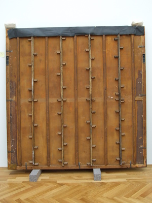 - (4-teilig): Mitteltafel 204 x 204 cm; linker und rechter Flügel je: 204 x 102 cm; Predella: 60 x 204 cm (Katalogmaß 2010) linker Flügel: 222,2 x 117,3 x 6,3 cm; Mitteltafel: 219 x 215,9 x 8 cm; rechter Flügel: 222,5 x 117 x 6,3 cm; Predella: 75 x 123 x 6,3 cm (Rahmenmaß, Tobias Lange, 28.04.2010)